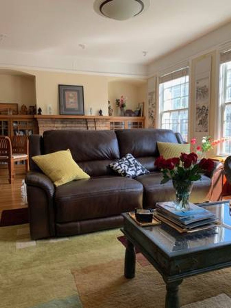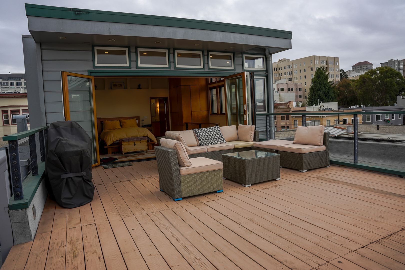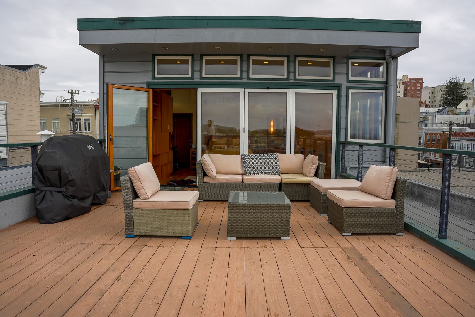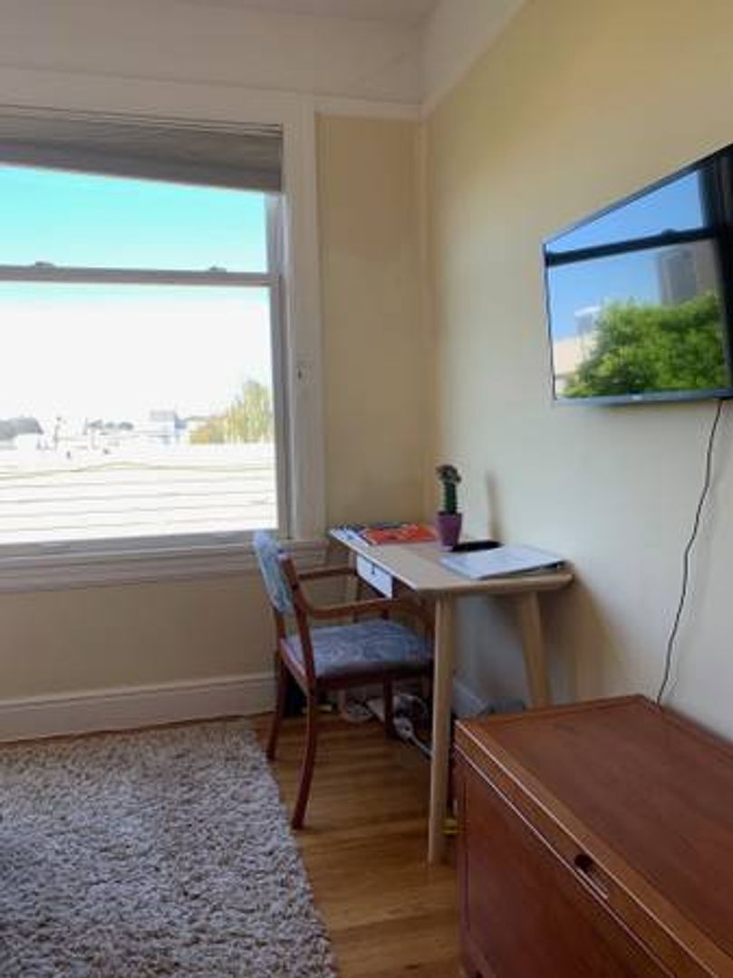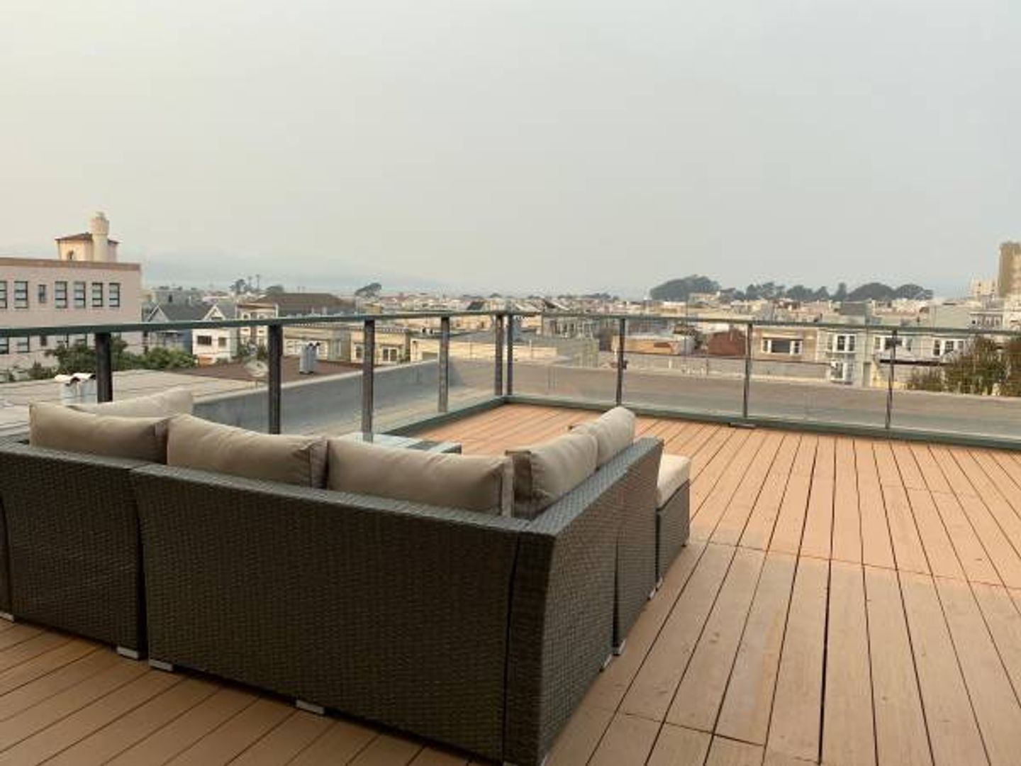 Luxury two level house, Golden Gate Bridge and Bay views. Elegantly fully furnished, with expansive living room with a decorative fireplace, formal dining room with custom made table, modern kitchen with Viking stove and professional appliances. Stairs opening to a wide foyer leading to living room. Two bed rooms with views on the first level - one with en-suite bathroom. Top level is the deluxe suite with spectacular views of the bay and Golden Gate bridge along with spacious en-suite bathroom. Stunning private deck. Hardwood floors throughout. Washer and dryer in garage. Also, a shared backyard with tables and chairs on the ground level behind the garage. Convenient location near freeways and Van Ness Corridor, Tech bus route. Walk able to restaurants, cafes, boutiques in Pacific Heights, Russian Hill and the Marina. Garage available for additional rent