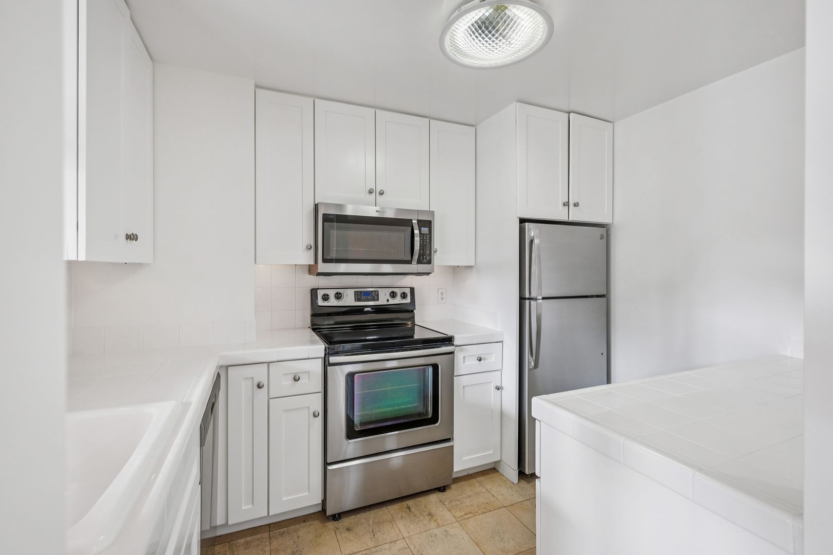 The kitchen is well-appointed with a full suite of appliances including a new refrigerator, new dishwasher, new microwave, and garbage disposal, along with ample cabinetry.