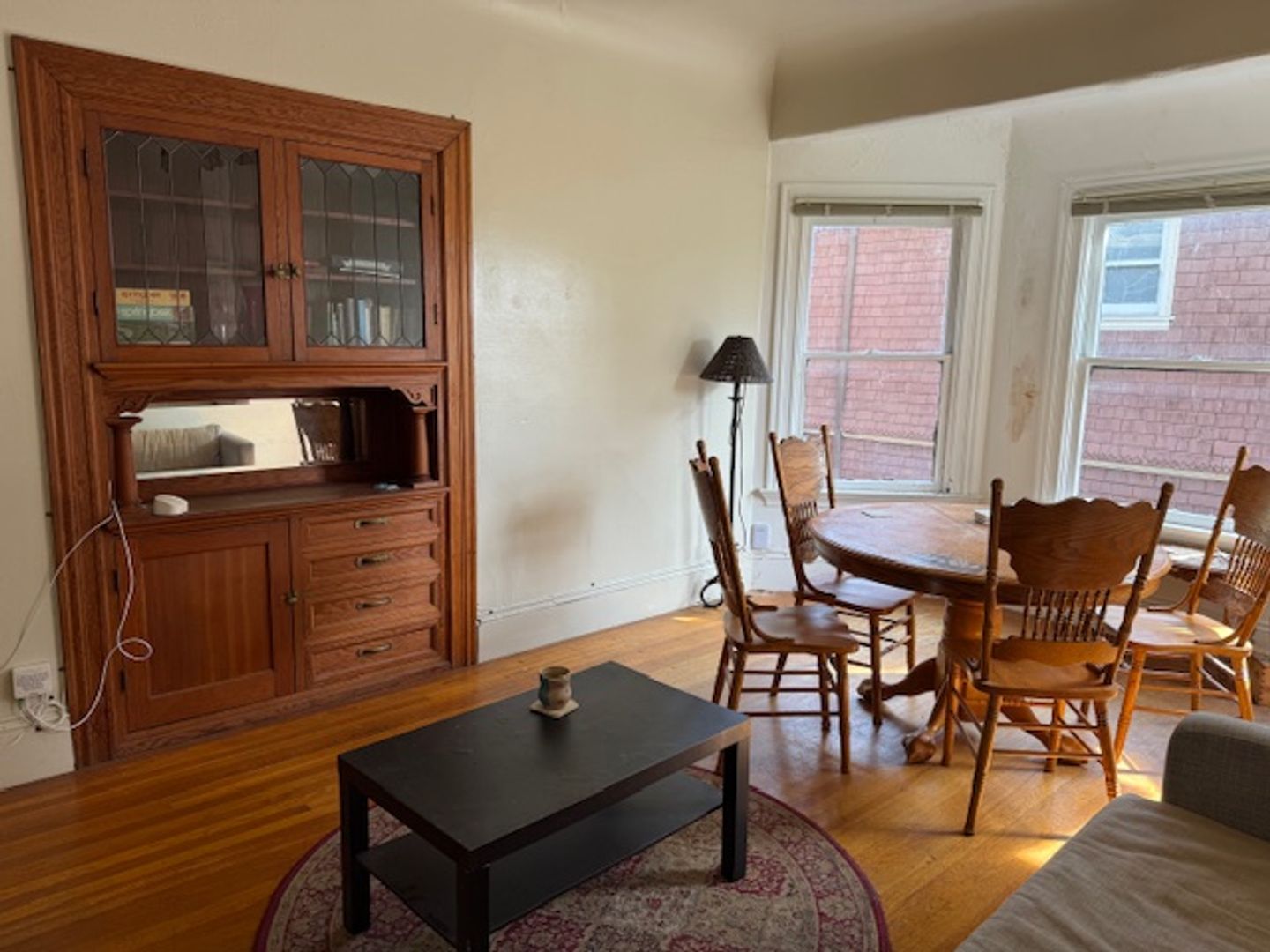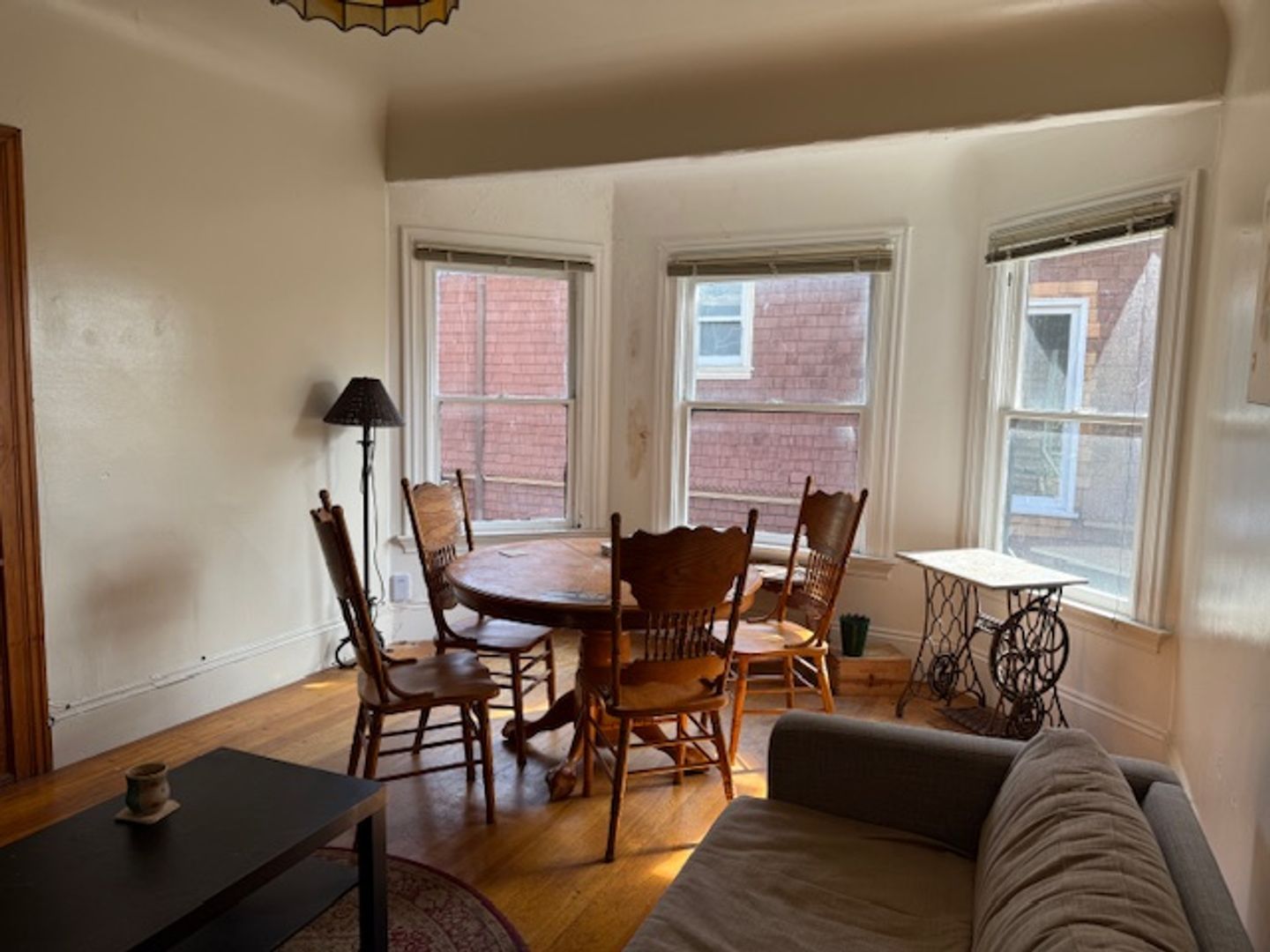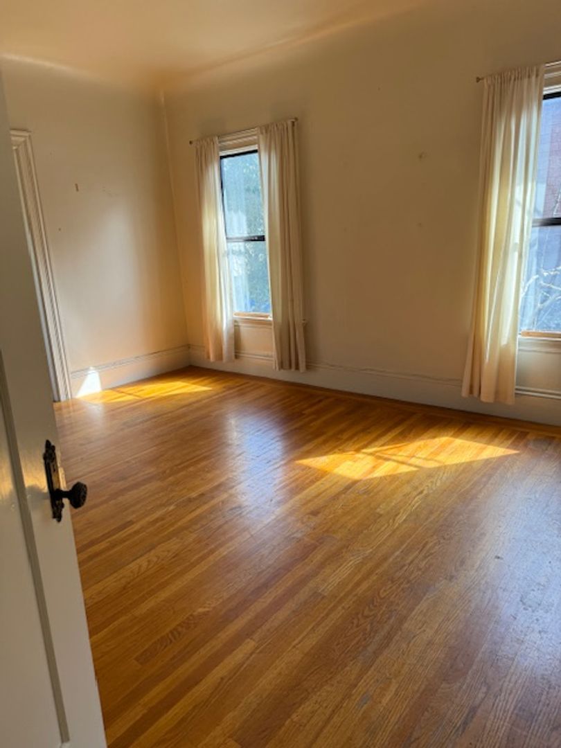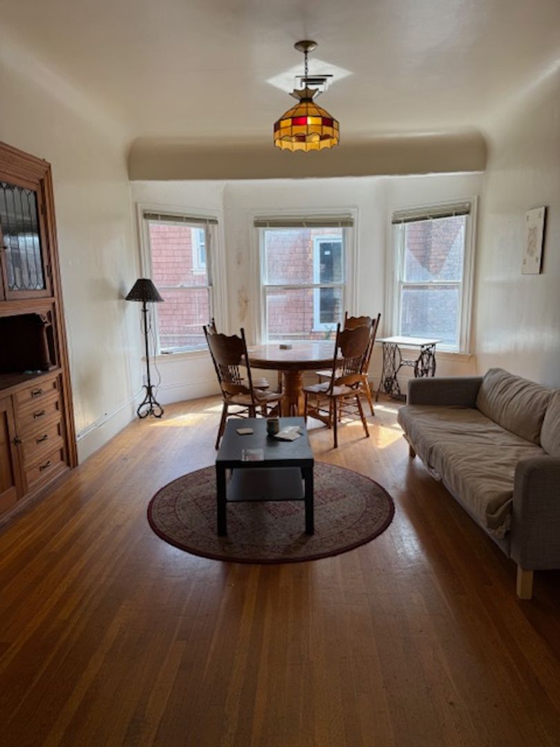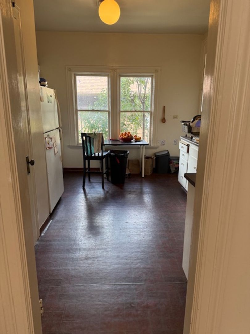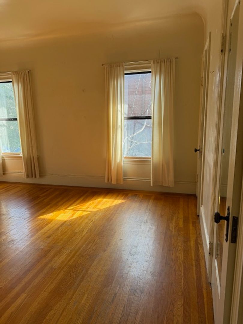 One Sunny Master bedroom for rent in a tenant share house plus extra room overlooking backyard. Includes one large closet and two smaller closets. Shared bathroom, kitchen, livingroom with tons of light. This upper flat includes three private bedrooms that are rented by young adults