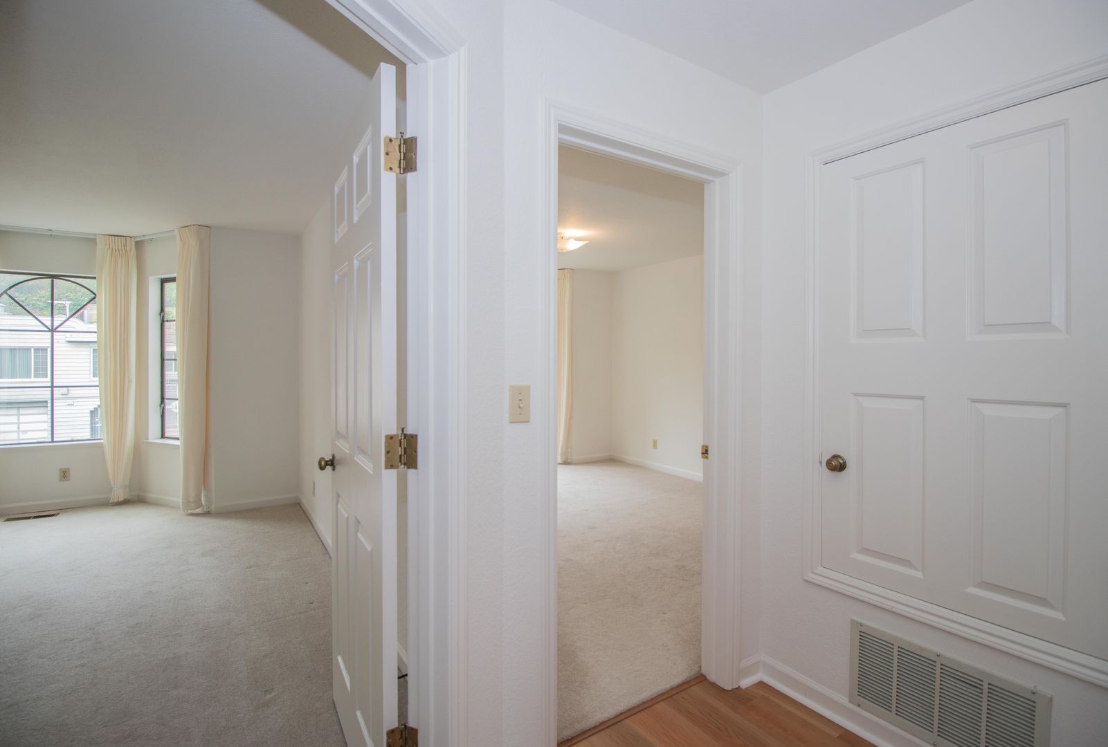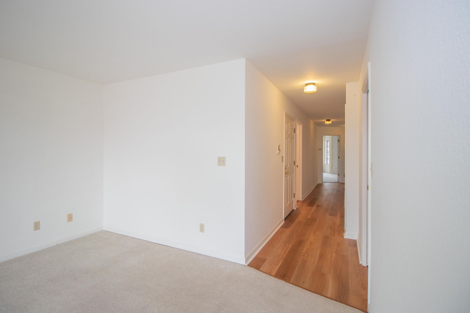-Carpet in Living Areas, Hardwood Hallway