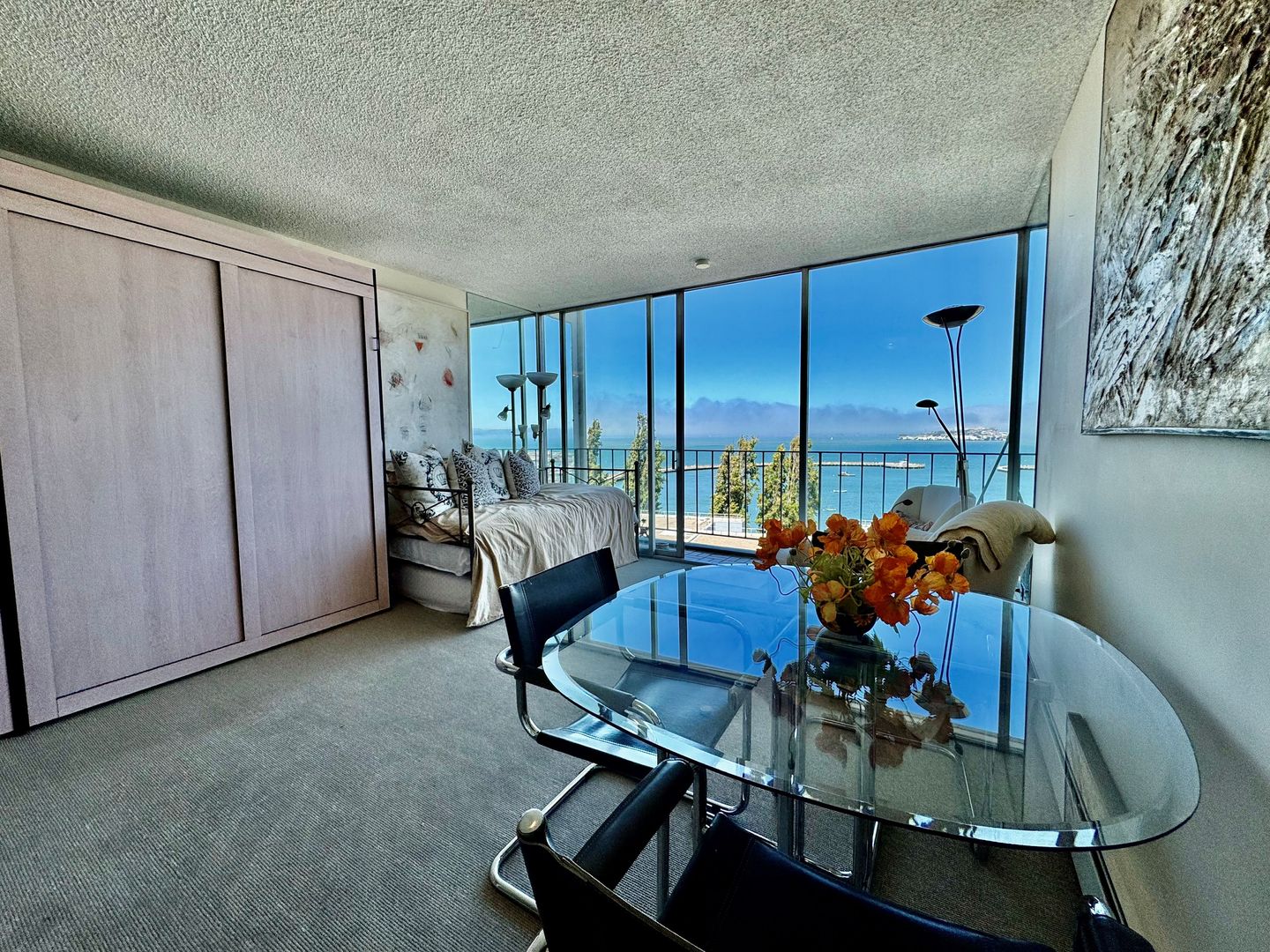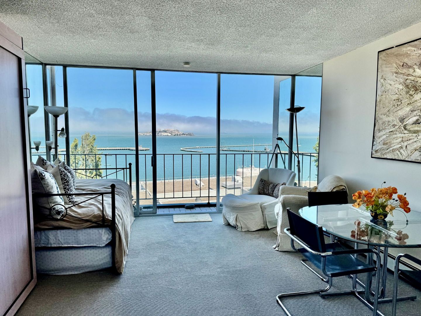 Your San Francisco Start, with a View! This Studio on the 5th Floor offers unforgettable, unobstructed views of the Bay, Alcatraz, and the Bay Bridge – the kind of backdrop that makes every morning feel inspired.