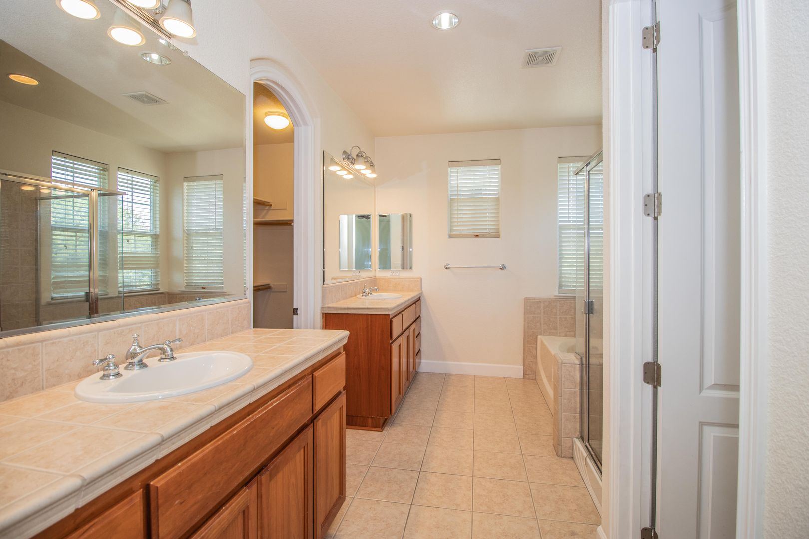 This home is located in the prestigious Hiddenbrookethat by the Golf Course! The lower level has 2 living areas, an open concept kitchen, and 1 bedroom 1 bath perfect for in-laws or guests. Upstairs has 3 bedrooms 2 bath and laundry quarters. Laminate flooring in 2 bedrooms. The Master bath has a separate tub and shower, dual vanity, and a walk-in closet. The garage can fit 2 full-size vehicles.