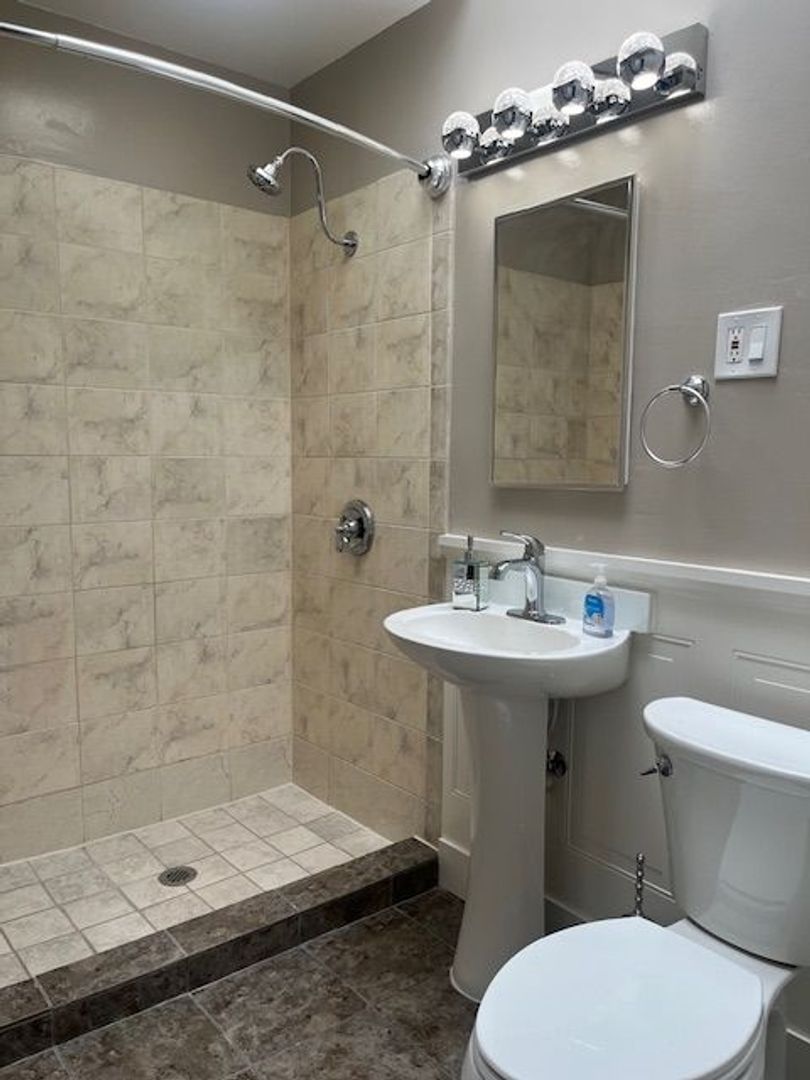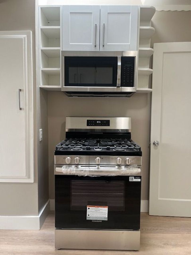 With new stainless steel appliances in the kitchen with a sky light. Spa like bathroom with built in seat in tiled shower with waterfall head and a skylight. There is also a garage and a back yard.