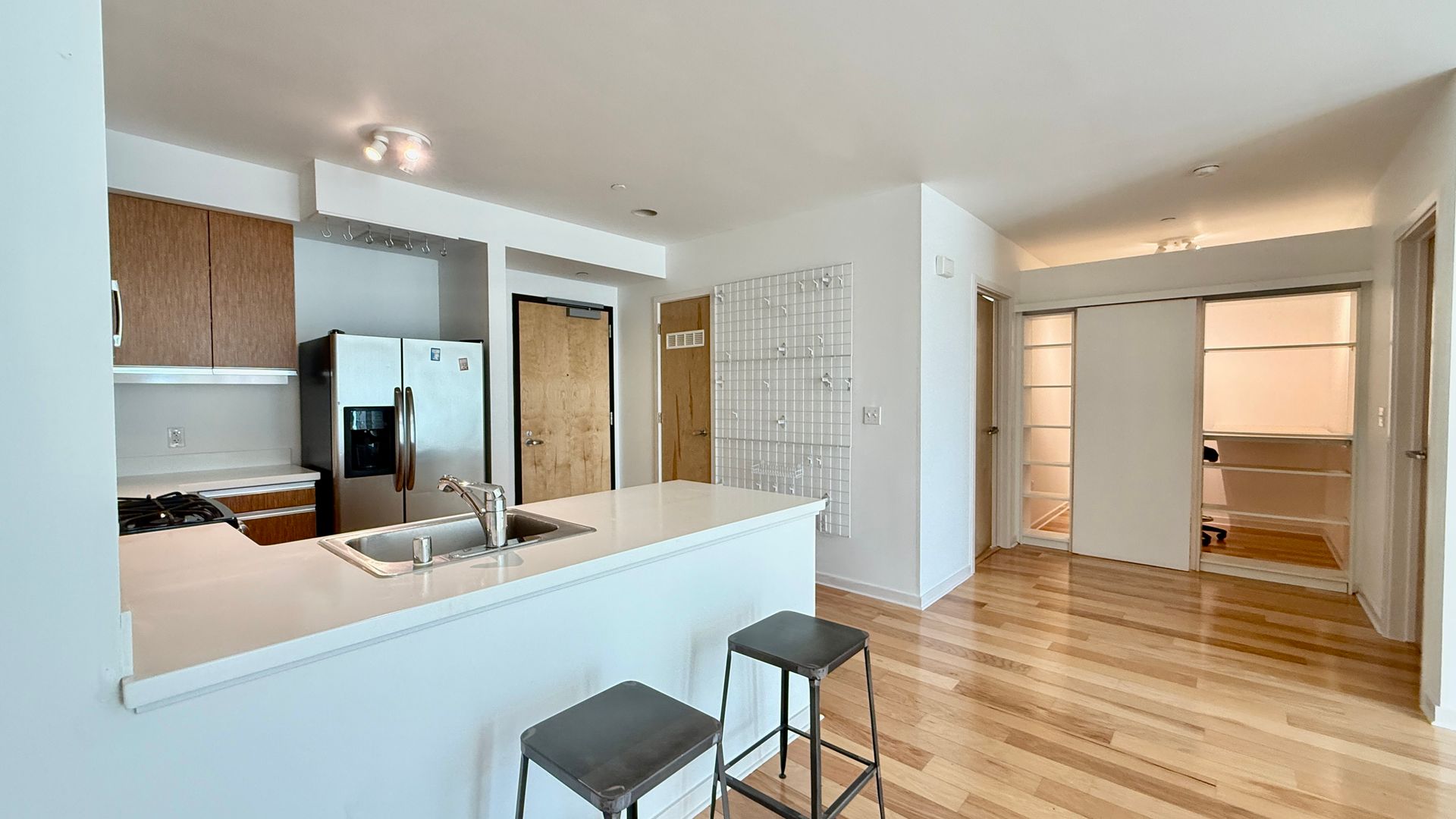 Welcome to this bright and spacious 1 bedroom plus den/office, 1 bath home offering 825 sq ft of comfortable living. Featuring wood flooring throughout, the open-concept living and dining area that extends seamlessly to a private patio with direct access to one of three landscaped courtyards, perfect for relaxing or entertaining.