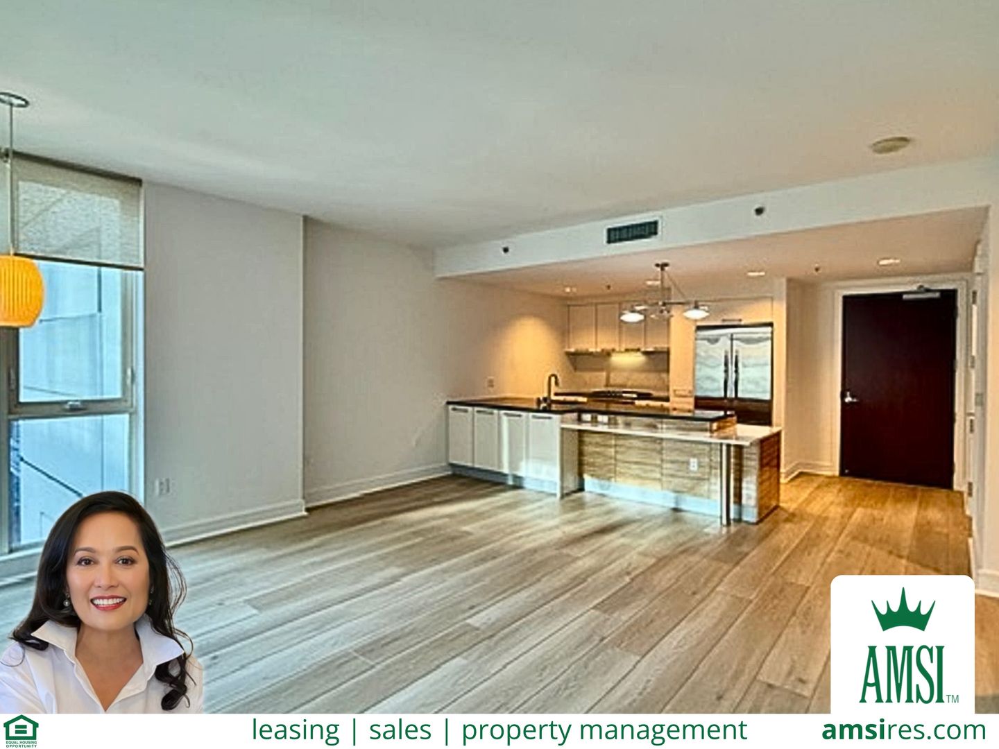 The open floor plan features wood flooring throughout the main living areas and carpeted bedrooms for added comfort. Enjoy floor-to-ceiling windows, a gourmet kitchen with European cabinetry and Viking appliances, and a primary suite with marble finishes, double sinks, and a custom California Closet.