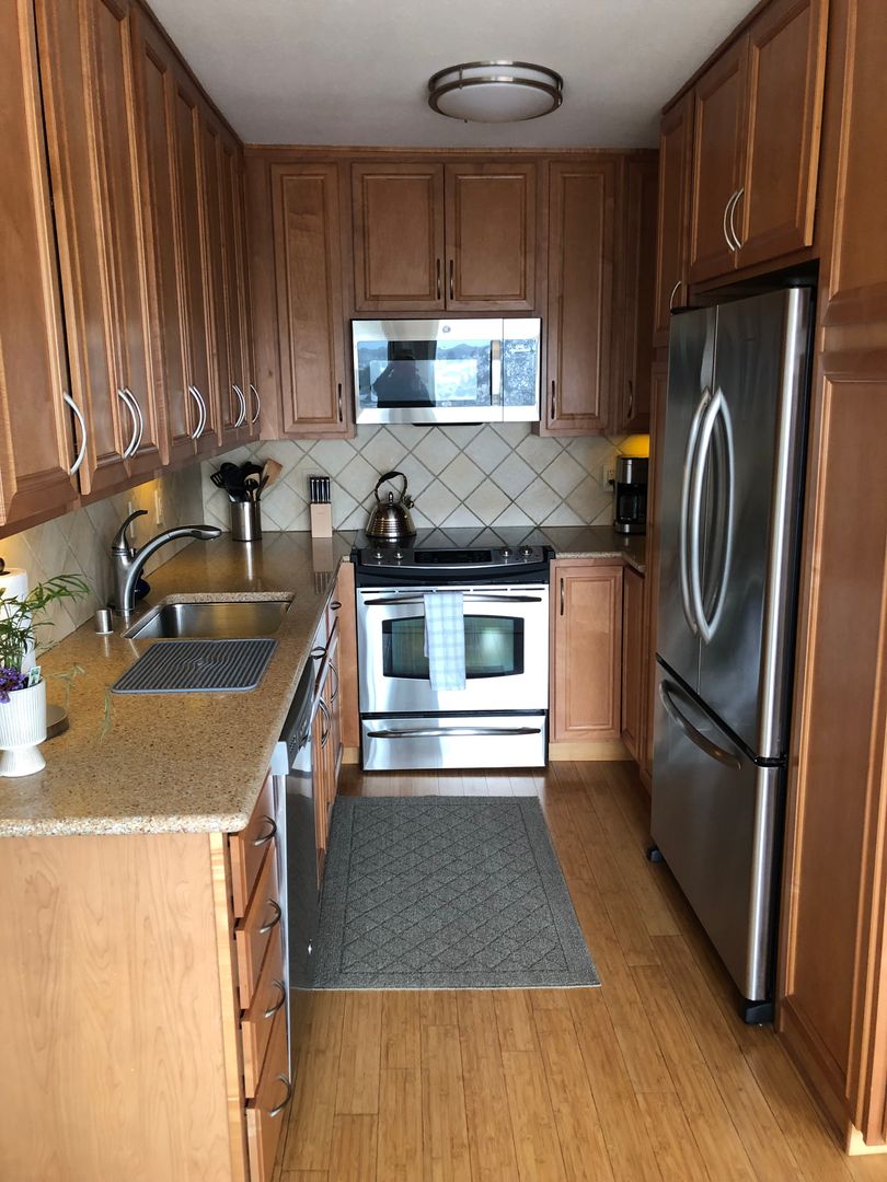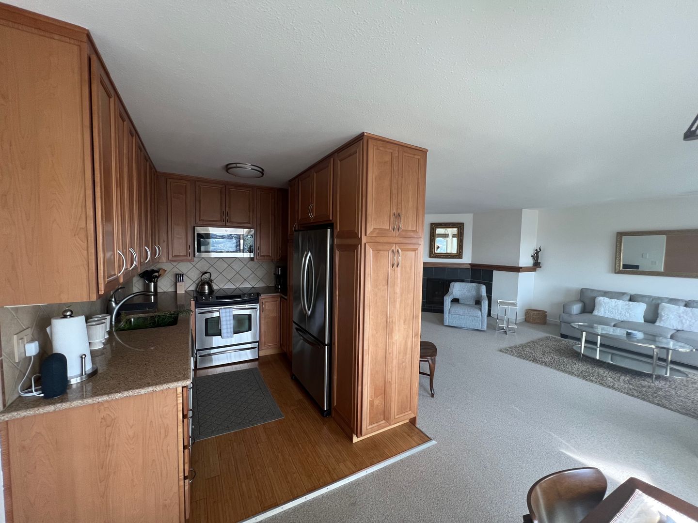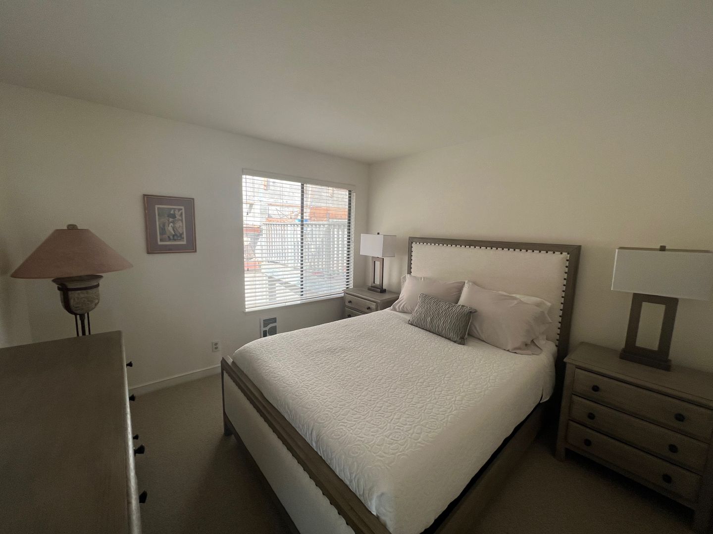 Technology ready, this comes equipped with a flat-screen TV in the living room, high-speed Wi-Fi, and cable TV. The living and dining spaces are combined, and you'll enjoy a galley kitchen with modern appliances. A desk is set by the front windows for you to enjoy working, and the expansive views. Two bedrooms are set in the back, very quiet & comfortable, with nice size closets. The bath offers a soaking tub and overhead shower. A private washer/dryer is located in the garage, and parking for one car.