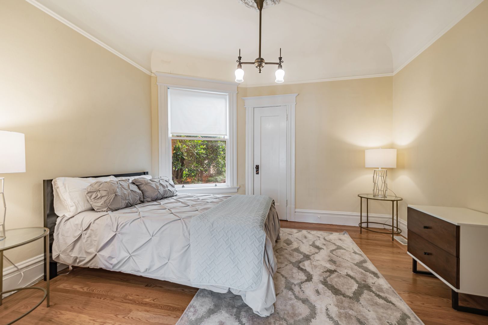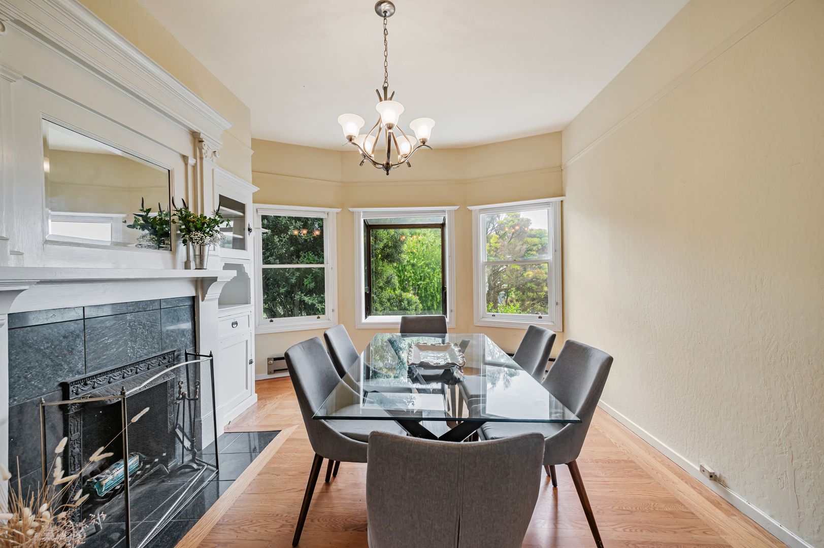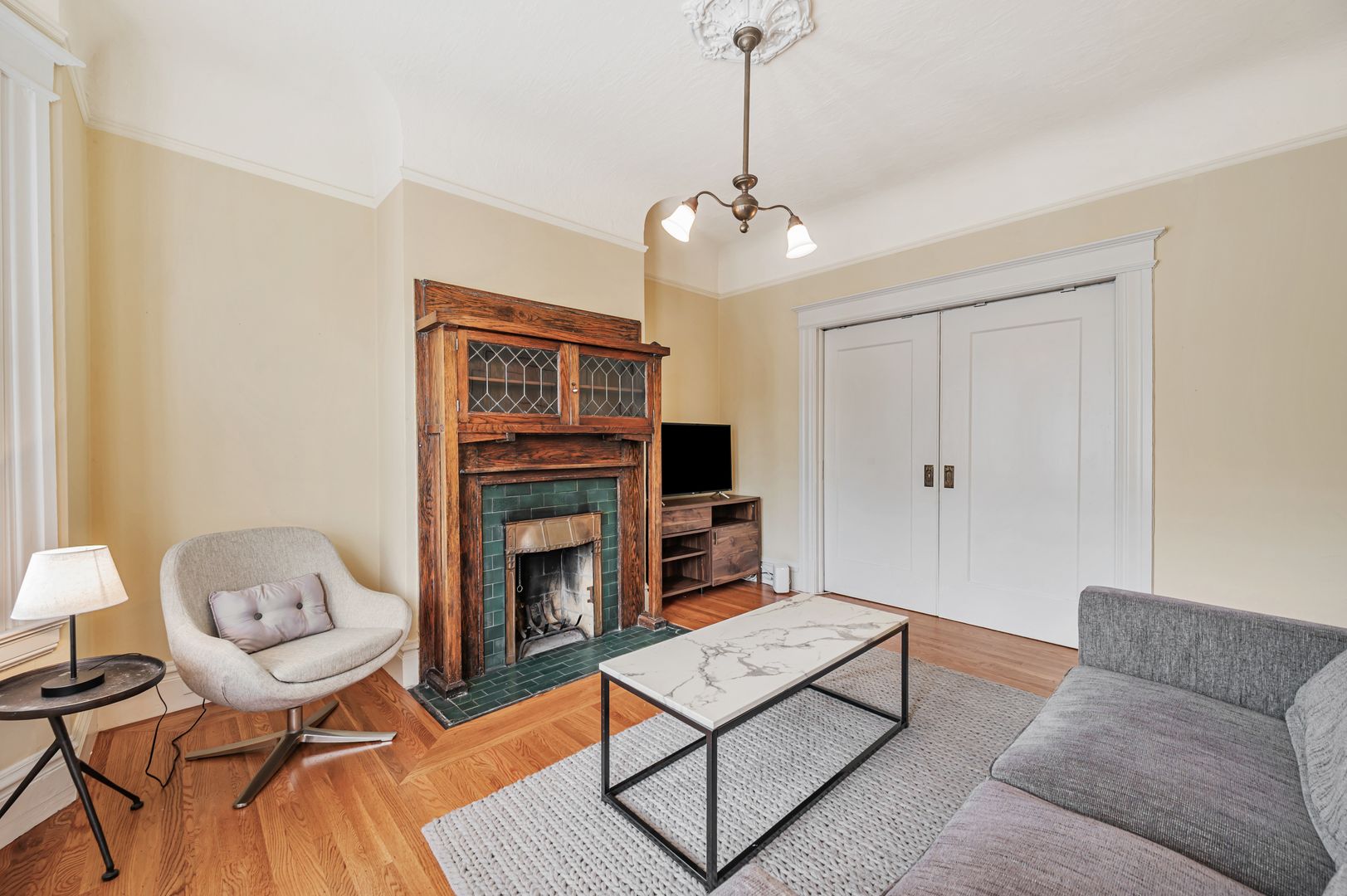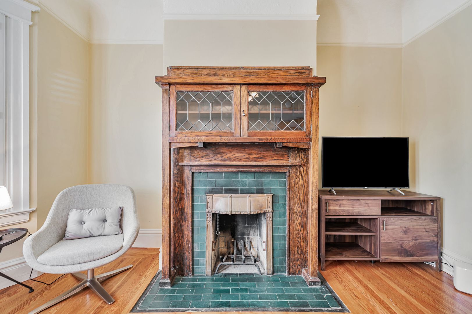 Step into this impeccably styled Edwardian Condo, thoughtfully renovated in 2018, nestled in the vibrant heart of Presidio Heights. Elegance resonates throughout this residence, boasting classic San Francisco architectural features including wainscoting, crown moldings, and vintage light fixtures. It features two charming fireplaces, one in the inviting living room and another in the sophisticated dining area (decorative purposes only).