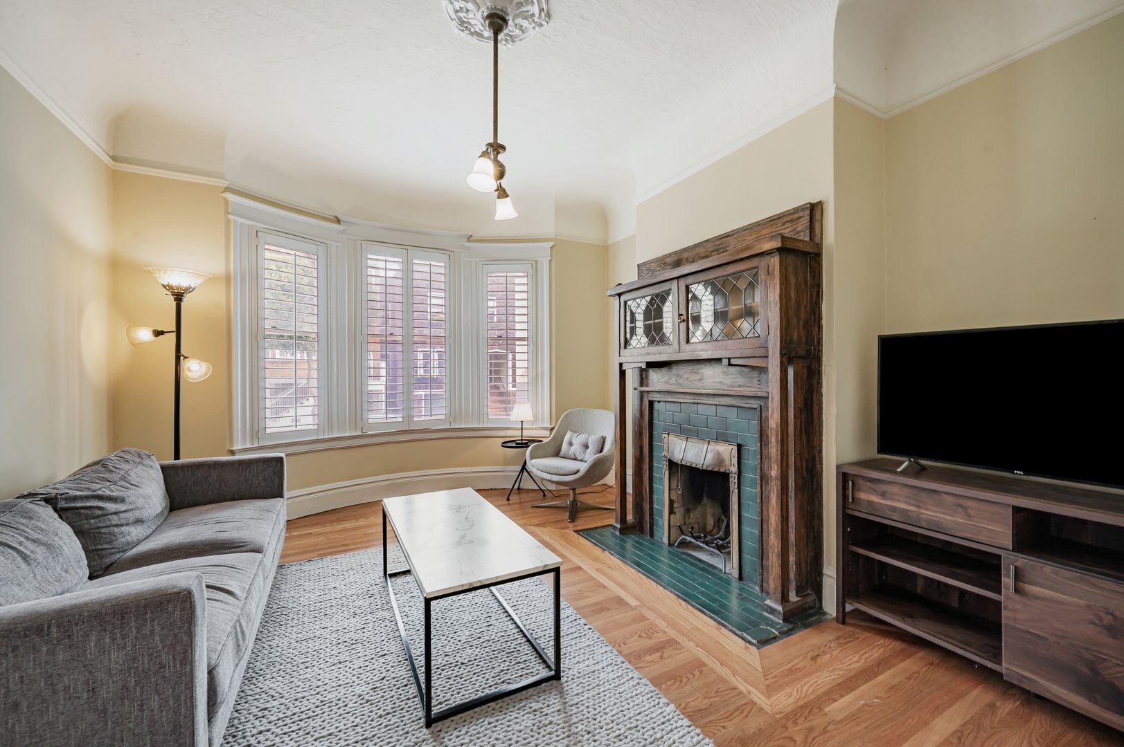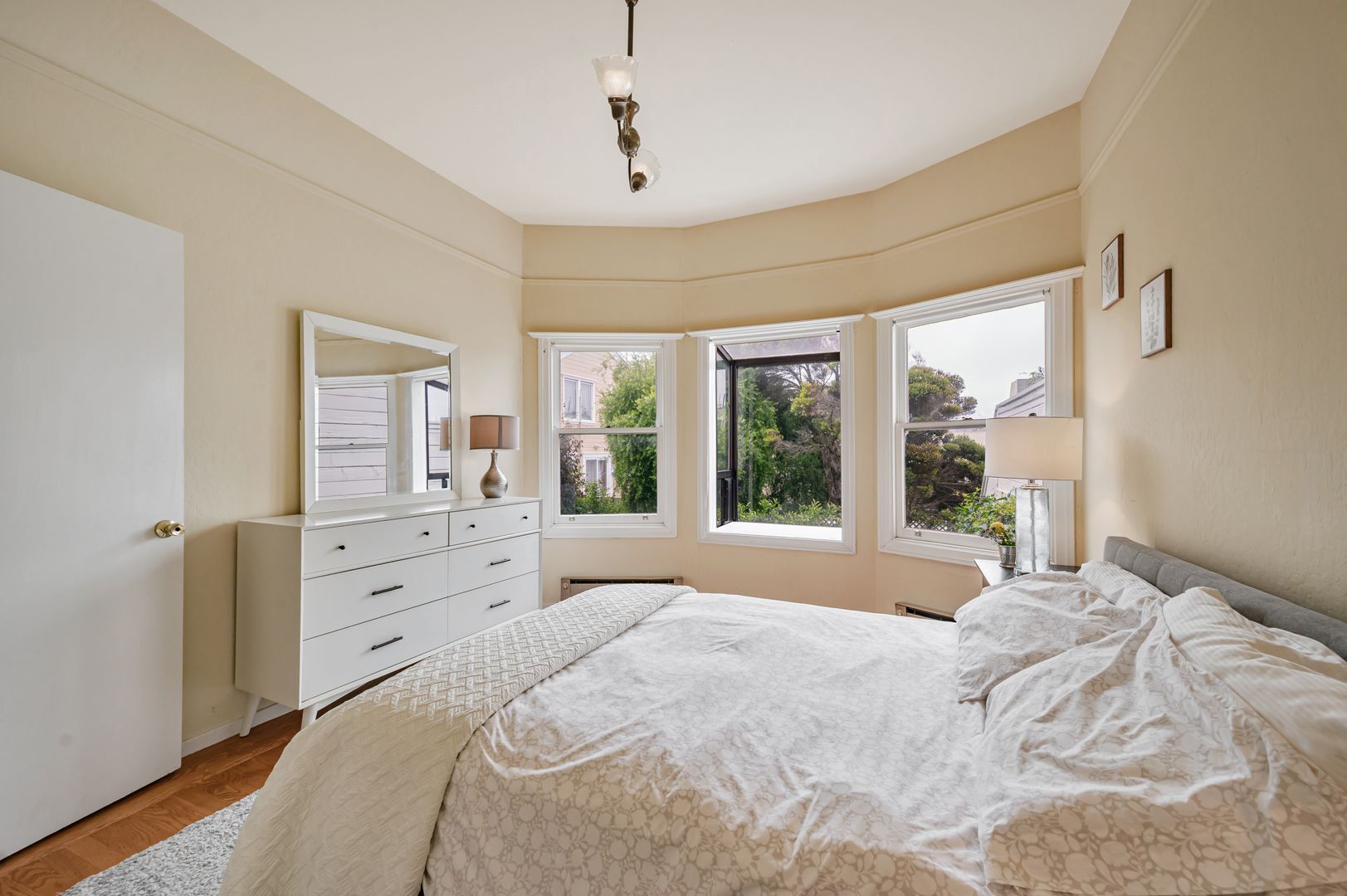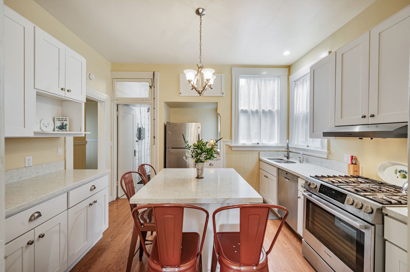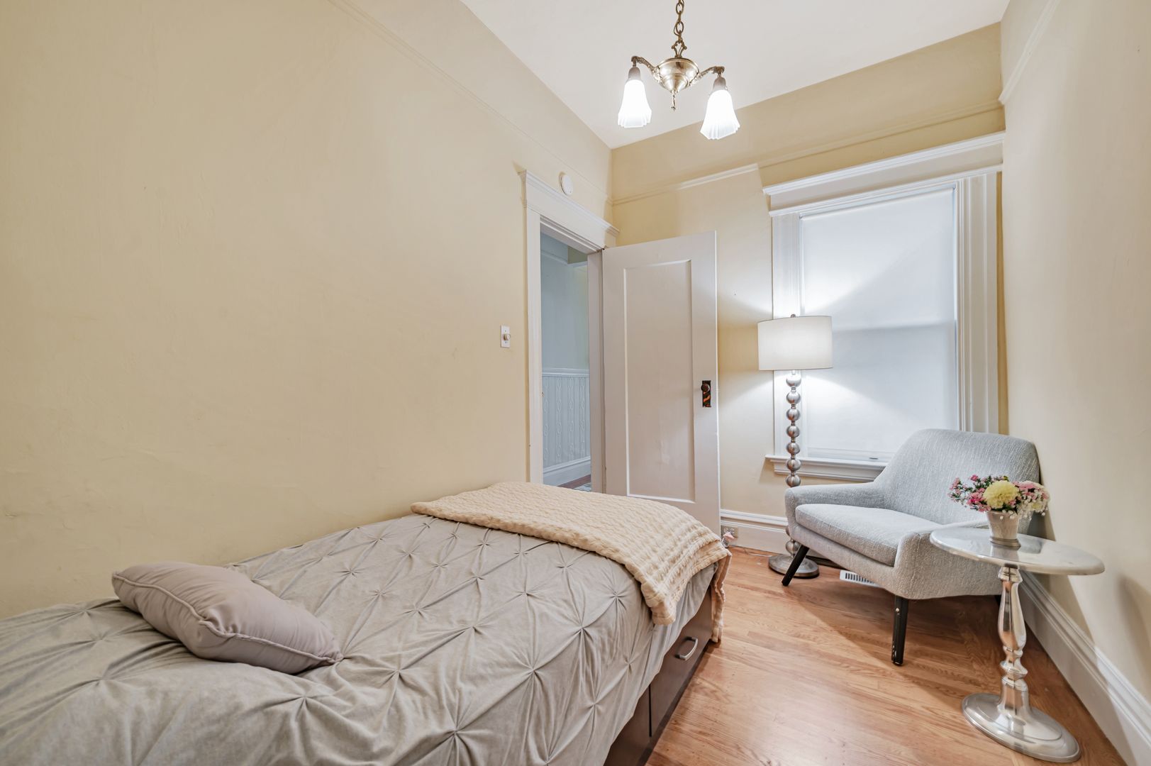 Step into this impeccably styled Edwardian Condo, thoughtfully renovated in 2018, nestled in the vibrant heart of Presidio Heights. Elegance resonates throughout this residence, boasting classic San Francisco architectural features including wainscoting, crown moldings, and vintage light fixtures. It features two charming fireplaces, one in the inviting living room and another in the sophisticated dining area (decorative purposes only).