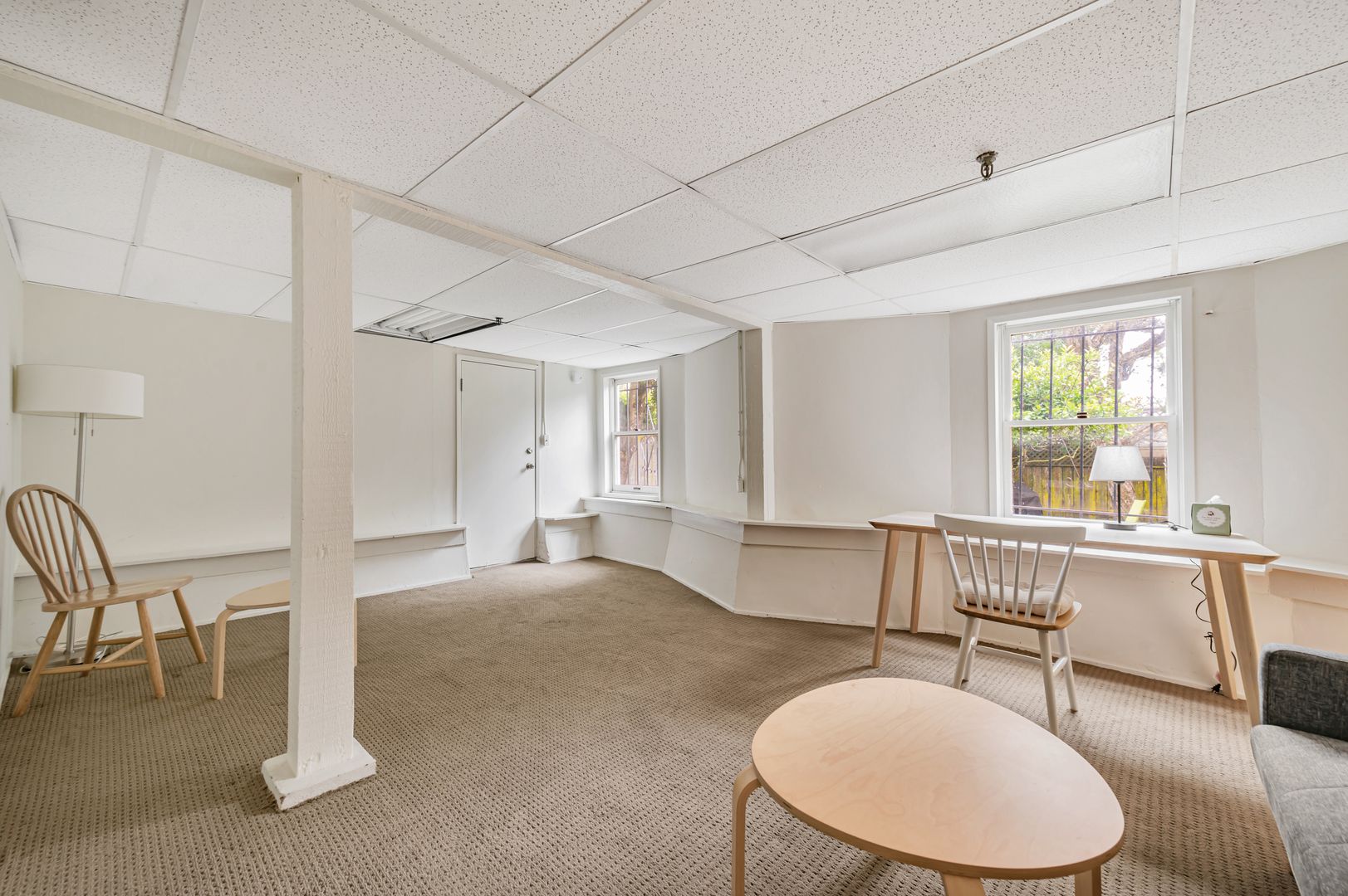 Additionally, discover a fully finished private storage room featuring windows overlooking the serene shared backyard and garden, offering versatile use as an office space or storage for strollers and bicycles.