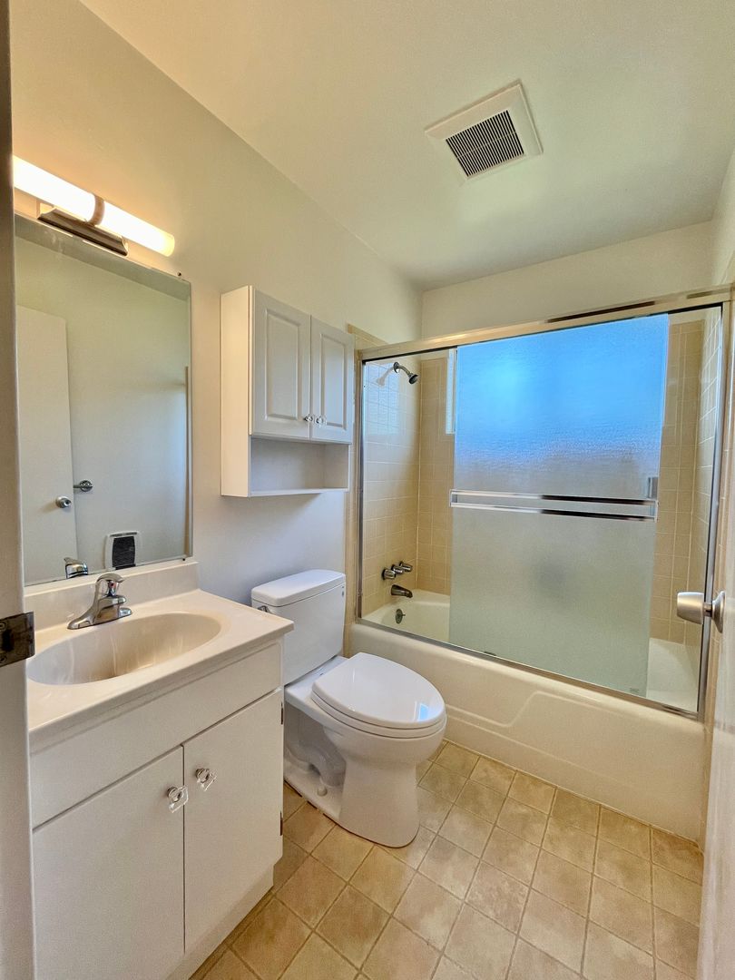 The Bedroom includes spacious closet space. Full bath includes tub and vanity for storage.