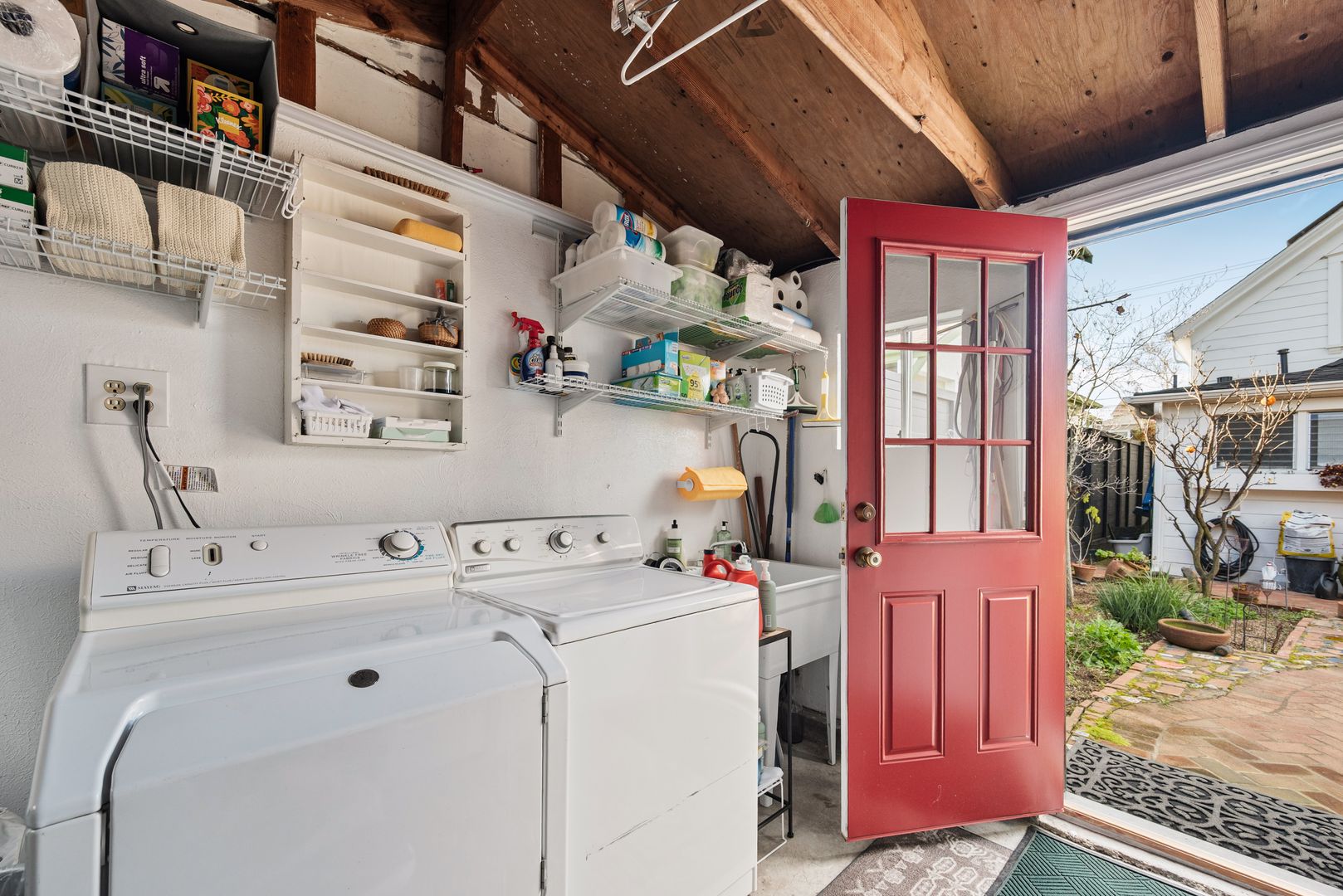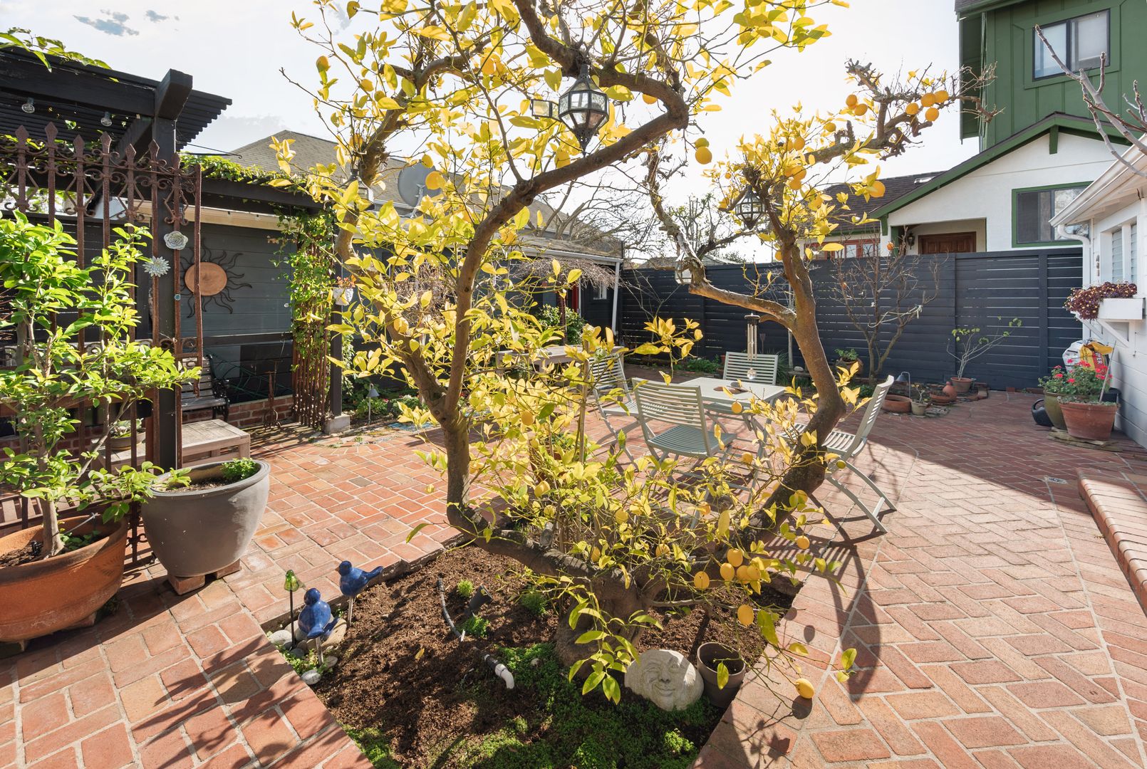 Step outside and you’ll find a garden oasis rarely seen in rental homes. Mature plantings include lemon, fig, blueberry, and cherry trees, along with fresh herbs such as mint. The yard is a peaceful retreat where hummingbirds regularly visit, creating a serene, almost storybook setting that feels worlds away from city life.