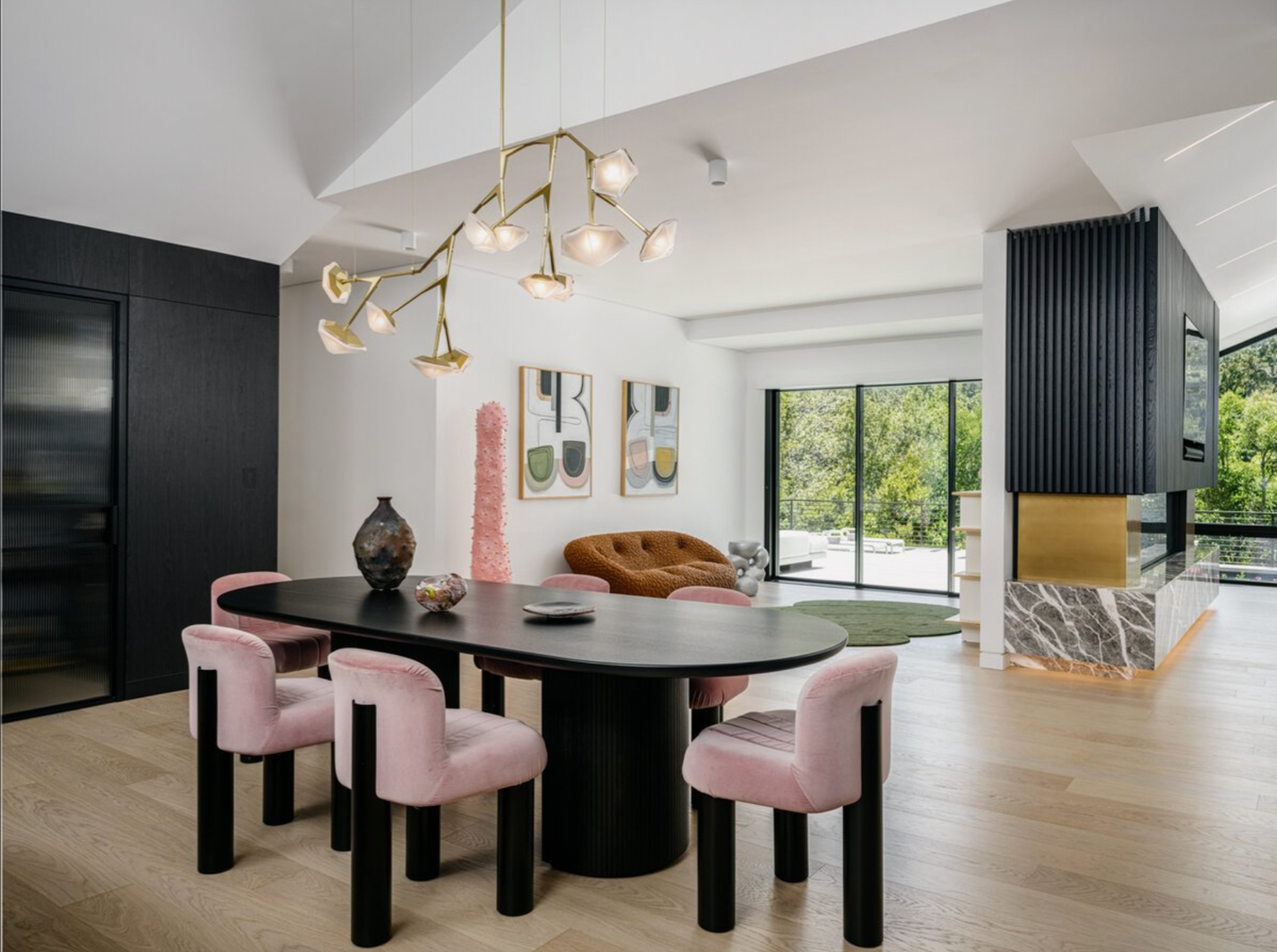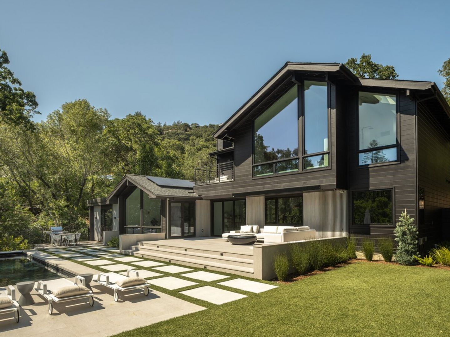 Additional features include hardwood flooring throughout, designer light fixtures, gas fireplace, sliders, pool & spa, air conditioning, brand-new windows, Lutron lighting system, solar, RO water system, two-car garage, ample driveway parking, and EV charger. Property will be delivered unfurnished. This is a no pet property.