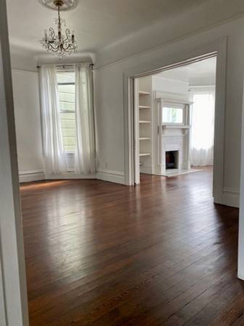 Late 19th century Protrero Hill upper unit Flat; period high ceilings w/ picture frame moldings and wainscoting + spacious decked backyard.