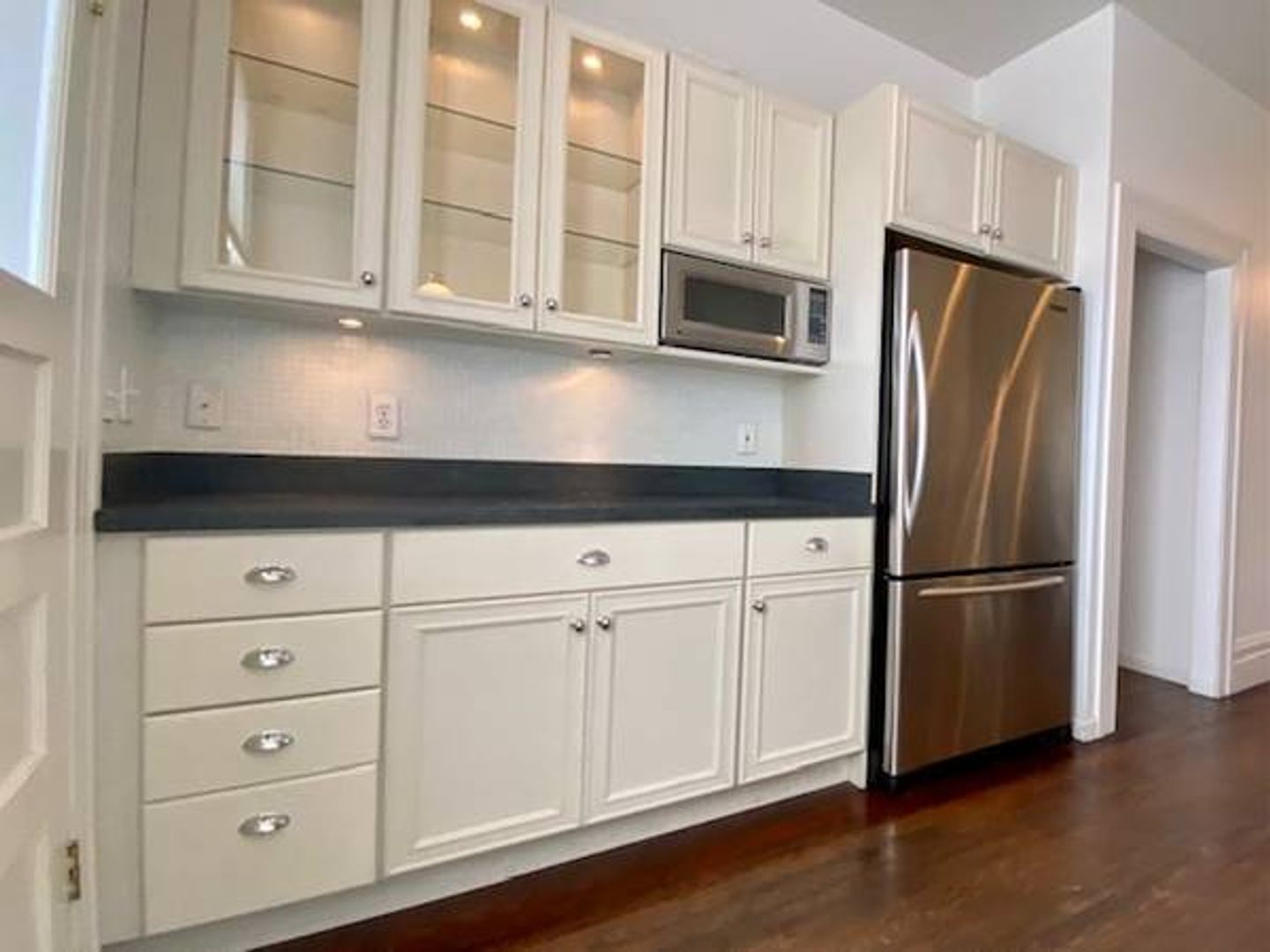 Layout includes: *master bedroom with walk in closet overseeing large backyard garden * designer bathroom with glass shower, full bath, dual sinks and handmade English fixtures *gourmet well appointed eat in kitchen with Thermador dual range, Miele dishwasher, custom fridge, marble countertops and lighted glass cabinets *old world spacious formal dining and living rooms * smaller second bedroom with closet *washer/ dryer utility space *bonus storage room *and more...