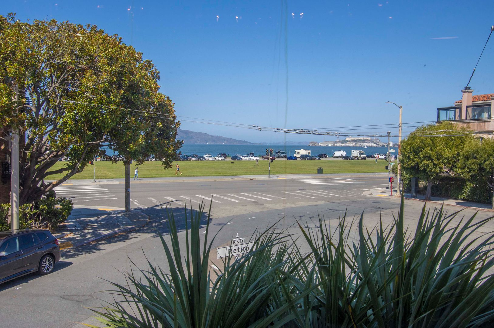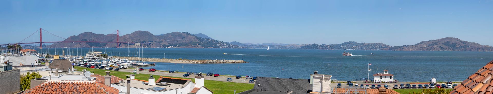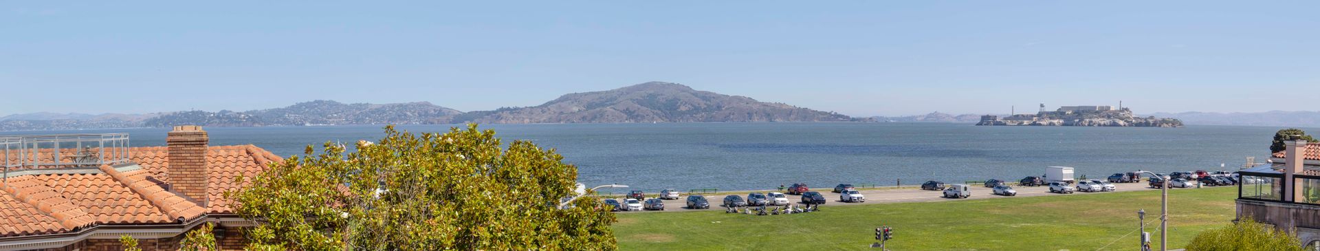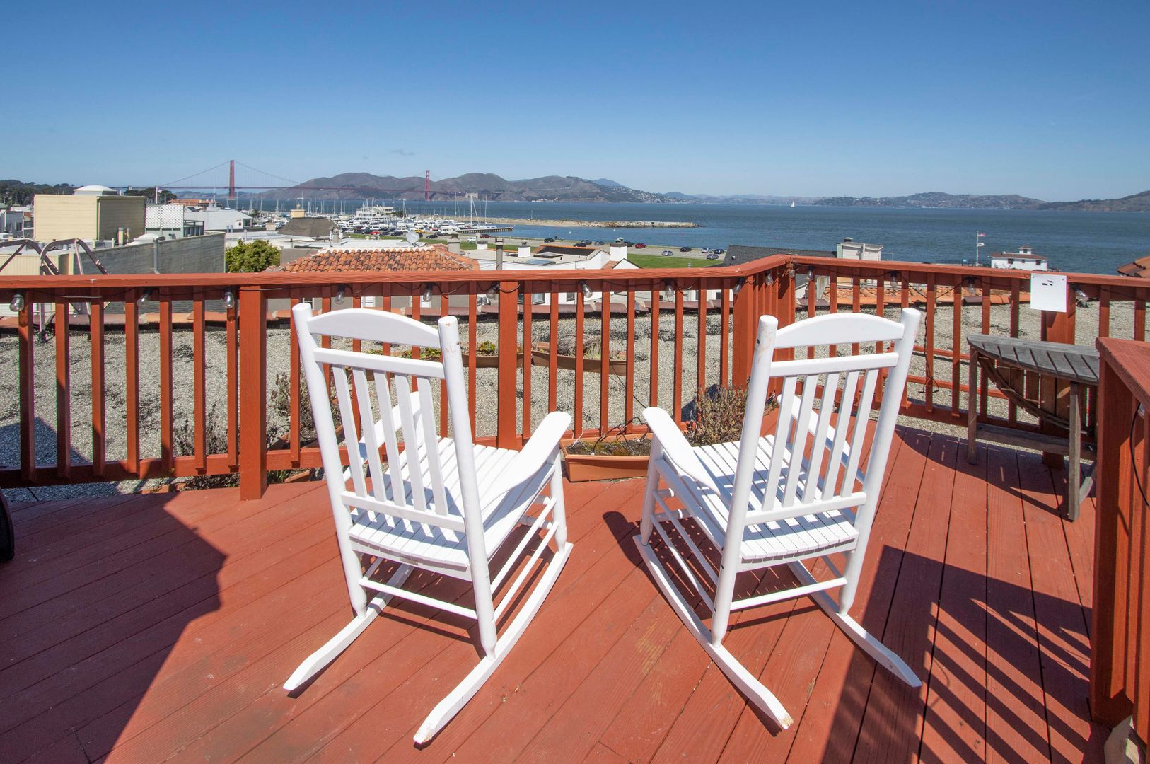 Marina Classic: Furnished 2 bedroom/2 bath condo with sweeping views of Alcatraz and SF bay. Stellar location..looking onto Marina Green right below your window. This condo is completely renovated with all high-end finishes and furnishings from RH. Hardwood floors throughout, radiant heating in all rooms, living room surrounded by windows, spacious kitchen with new stainless appliances, built in bar, large master bedroom with water views, custom bathrooms and built-in closets and washer/dryer.  1-car parking, extra storage, roof deck and a view that never gets old!  Located at the end of Fillmore Street in a picturesque Mediterranean style building. No pets.  Broker Associate, Selma Bushell, DRE#01510129