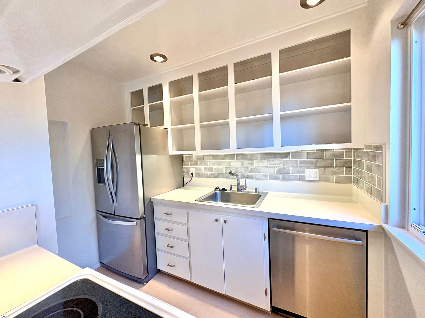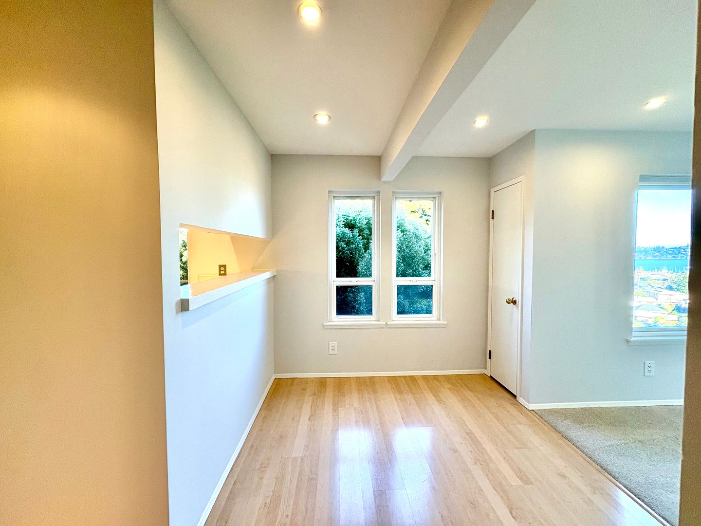 Vacation living every day. Unfurnished-This 2 bedroom/2 ensuite bath, upper corner unit, has some of the best Sausalito Bay and Wildlife Preserve views in the Anchorage community. Light, bright and remodeled and upgraded. The unit offers two primary suites and an open concept kitchen and living area. Both the living room and one of the bedrooms face the peaceful Sausalito Bay. Living room includes a beautiful fireplace. Through the sliding glass doors is the deck with breathtaking Bay views. Bright kitchen includes stainless steel appliances, a pass through bar, and tons of storage. Washer and dryer in unit and 1 assigned parking space.Building amenities include solar-heated pool, sauna, recently renovated clubhouse with full kitchen, indoor and outdoor entertaining areas, Water and Garbage included in the rent.