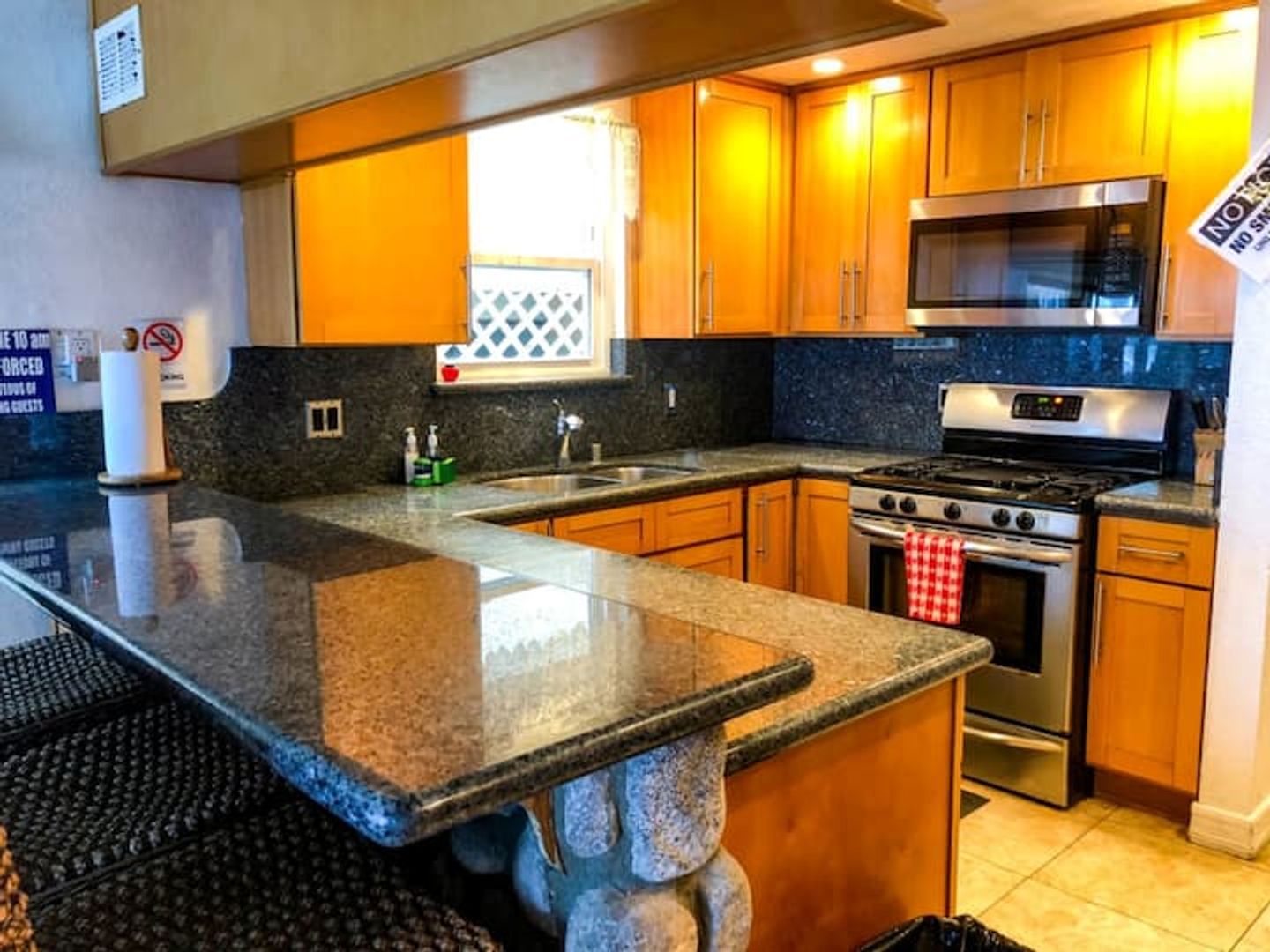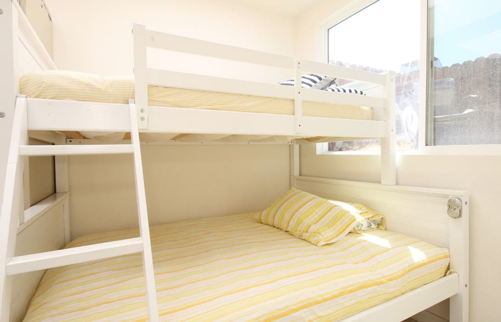 There are four (4) traditional beds, one (1) bunk bed, and three (3) futon beds in living room that can sleep 9 people in total; however, if guests are willing to share beds, the house can accommodate more individuals. We're offering the most affordable rental rates for a 4BR 3BA beachfront gem, right on the Ocean Front Walk.